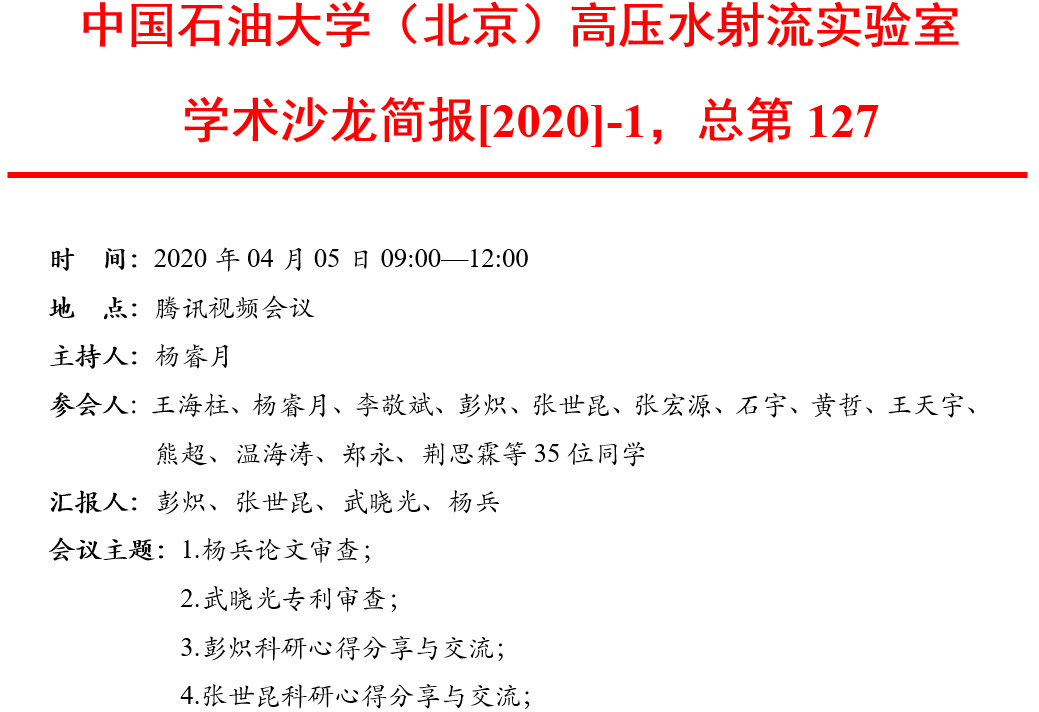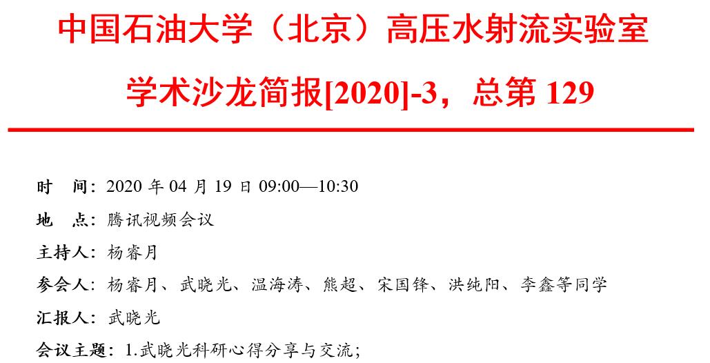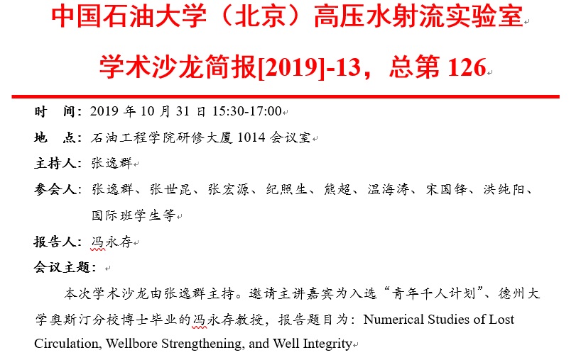 文化建设 收起 学术沙龙 文体活动 短文分享 友情链接 下载专区 OA平台 学术沙龙简报[2020]-4,总第1302020-05-05 张宏源科研心得分享与交流 [查看详情 ] 学术沙龙简报[2020]-3,总第1292020-04-20 1.武晓光科研心得分享与交流; [查看详情 ] 学术沙龙简报[2020]-2,总第1282020-04-13 1.谷子昂专利审查; 2.黄哲科研心得分享与交流; 3.石宇科研心得分享与交流; [查看详情 ] 学术沙龙简报[2020]-1,总第1272020-04-08 1.杨兵论文审查; 2.武晓光专利审查; 3.彭炽科研心得分享与交流; 4.张世昆科研心得分享与交流; [查看详情 ] 学术沙龙简报[2019]-13,总第1262019-11-06 本次学术沙龙由张逸群主持。邀请主讲嘉宾为入选“青年千人计划”、德州大学奥斯汀分校博士毕业的冯永存教授,报告题目为:Numerical Studies of Lost Circulation, Wellbore Strengthening, and Well Integrity [查看详情 ] 共93条记录 10/19页 首页 上一页 下一页 尾页 第 1 2 3 4 5 6 7 8 9 10 11 12 13 14 15 16 17 18 19 页