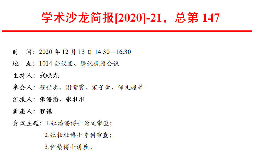 文化建设 收起 学术沙龙 文体活动 短文分享 友情链接 下载专区 OA平台 学术沙龙简报[2021]-1,总第1502021-01-15 1.裴志君博士专利审查 2.宋恒宇博士讲座 [查看详情 ] 学术沙龙简报[2020]-23,总第1492021-01-05 1.郑永博士讲座 [查看详情 ] 学术沙龙简报[2020]-22,总第1482021-01-05 1.熊超博士论文审查与专利审查; 2.刘伟硕士专利审查; 3.陈振良博士讲座。 [查看详情 ] 学术沙龙简报[2020]-21,总第1472020-12-21 1.张潘潘博士论文审查; 2.张壮壮博士专利审查; 3.程镇博士讲座。 [查看详情 ] 学术沙龙简报[2020]-20,总第1462020-12-20 1.代献伟博士论文审查; 2.王天宇博士专利审查; 3.陈昭廷硕士专利审查。 [查看详情 ] 共93条记录 6/19页 首页 上一页 下一页 尾页 第 1 2 3 4 5 6 7 8 9 10 11 12 13 14 15 16 17 18 19 页